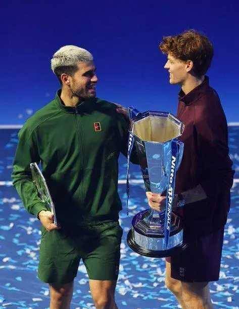 阿尔卡拉斯在颁奖典礼上展现出与场上激情四溢完全不同的平静。 这位已经锁定年终世界第一的西班牙新星,坦然肯定了两人整个赛季竞争的价值。 他说今年对他们两人而言都是很棒的一年,一整年下来他们都保持着极高的竞技水平。