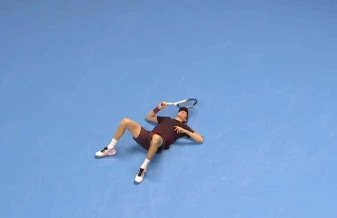 还记得比赛最后一分结束时的场景吗? 辛纳直接躺倒在地上,就像卸下了千斤重担。 而阿尔卡拉斯站在网前,表情复杂。 这两位球员一个22岁,一个24岁,却已经拿了7座大满贯奖杯。 费德勒、纳达尔、德约科维奇他们在这个年纪的时候,恐怕也没这么嚣张吧?