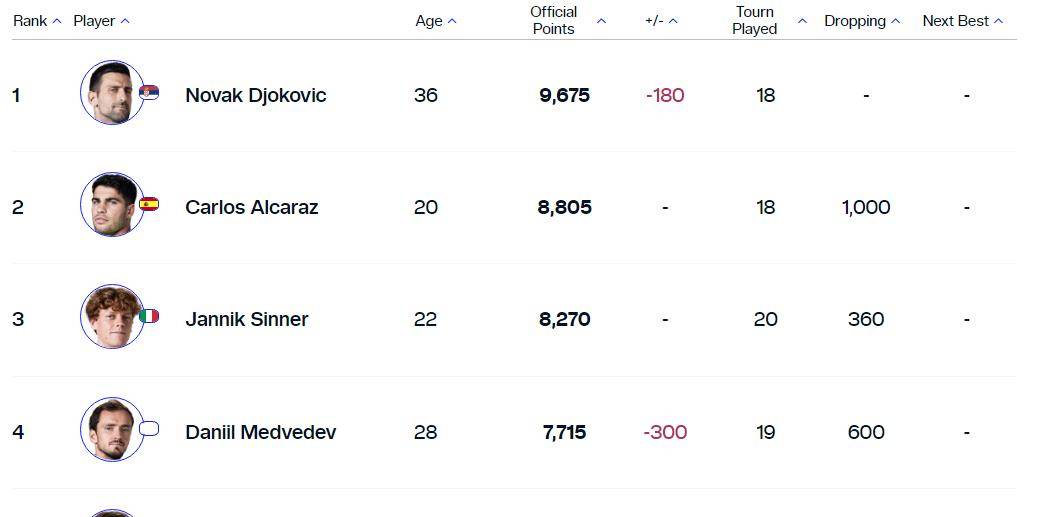 在墨西哥的第2站比赛拿到冠军后,德米纳尔力压西西帕斯,保住了前十的位置,但在接下来的两周内需要小心应对。弗里茨是排名最高的国外选手,但降至第12位。